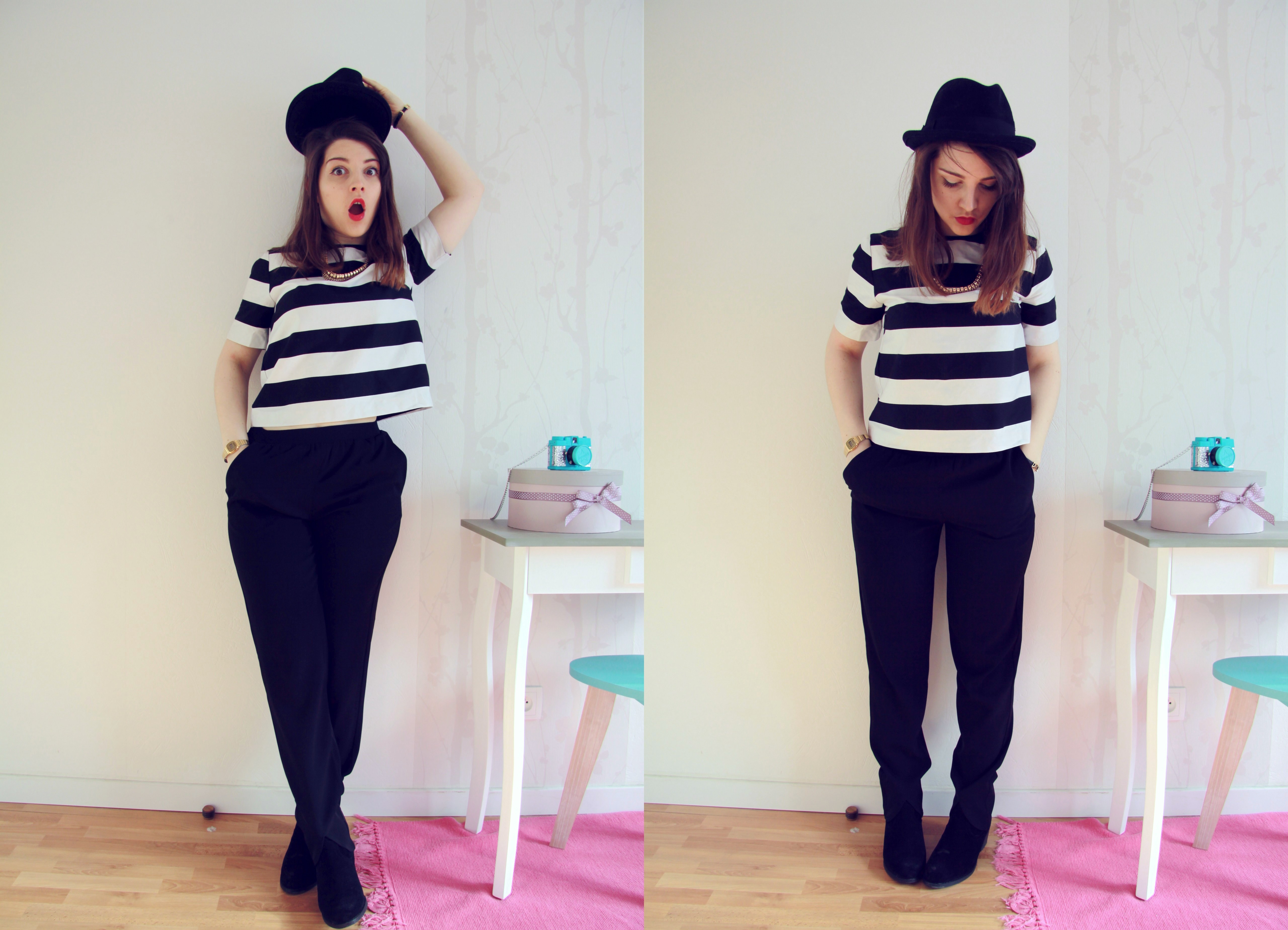 Top H&M / Pantalon H&M / Collier H&M / Bracelet Claire’s / Montre Casio / Bottines La Redoute Création / Chapeau H&M