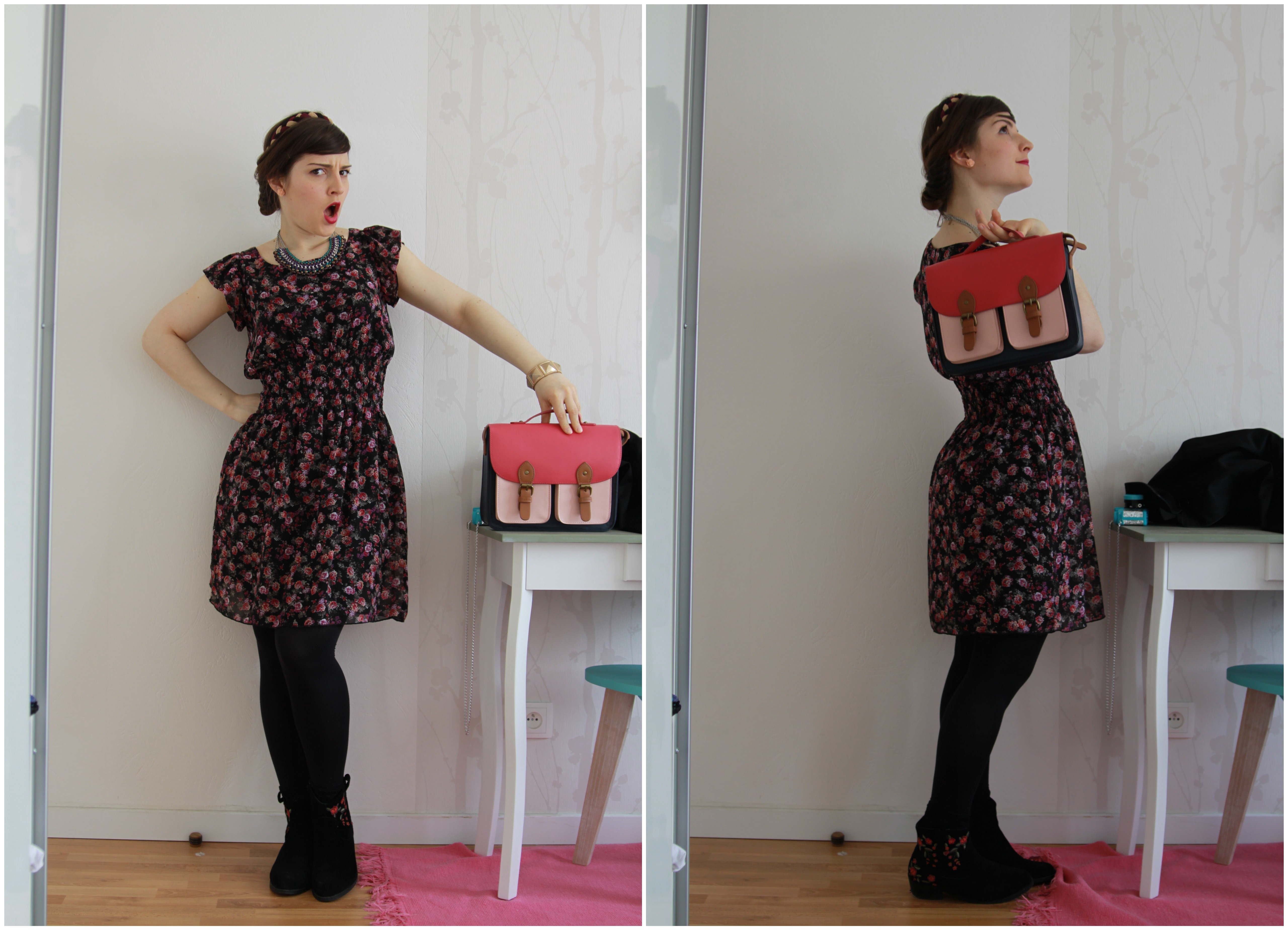 Robe New Look / Bottines La Redoute / Collier Bala Boosté / Headband Adéli Paris / Sac Bershka / Lunettes Galeries Lafayette