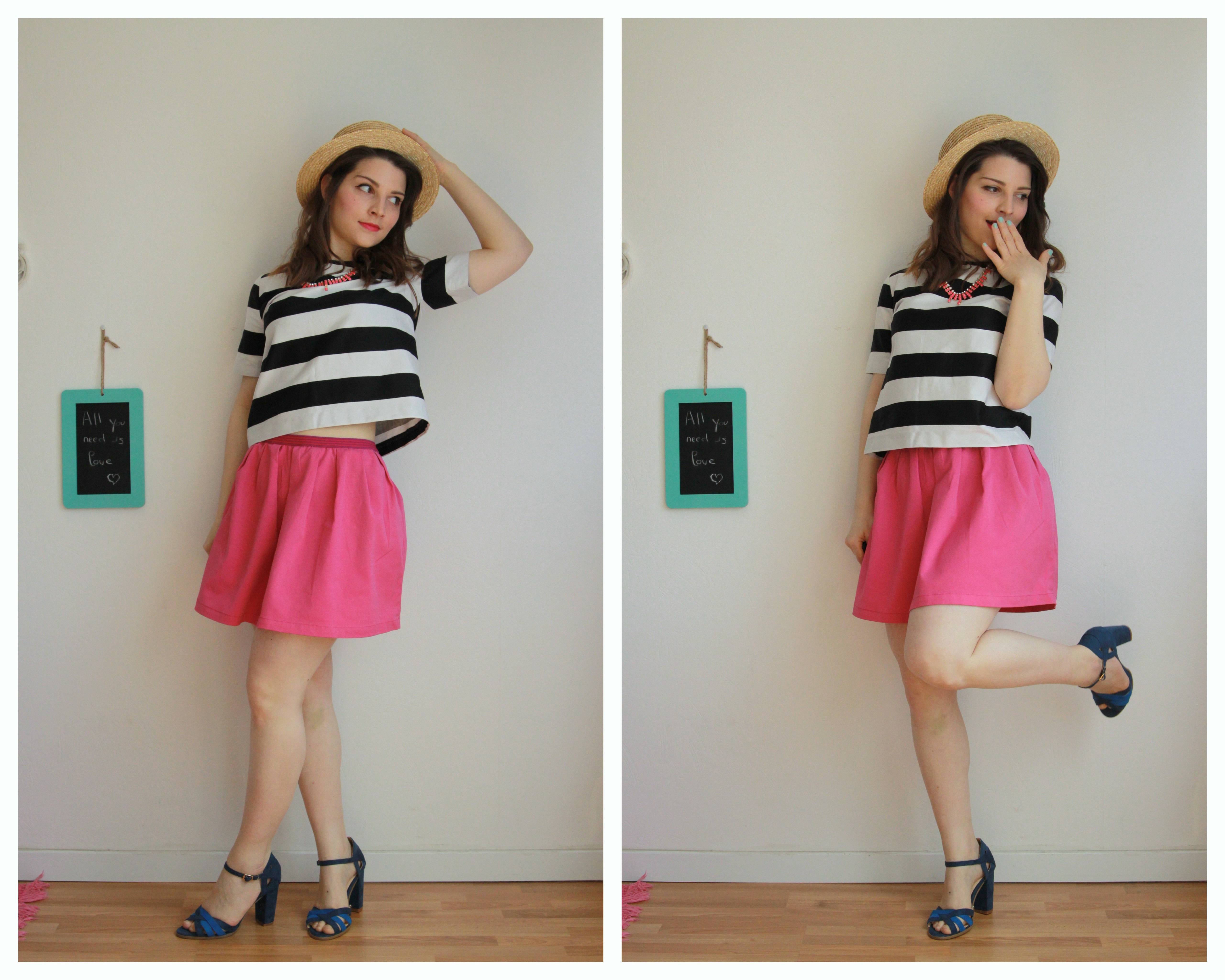 2. Tu portes très bien cette tenue ! J’adore les rayures et ce petit haut est adorable, il se marie vraiment bien avec la jupe ! Et comme je suis une fanatique des chapeaux, je ne peux qu’adorer ton petit canotier !