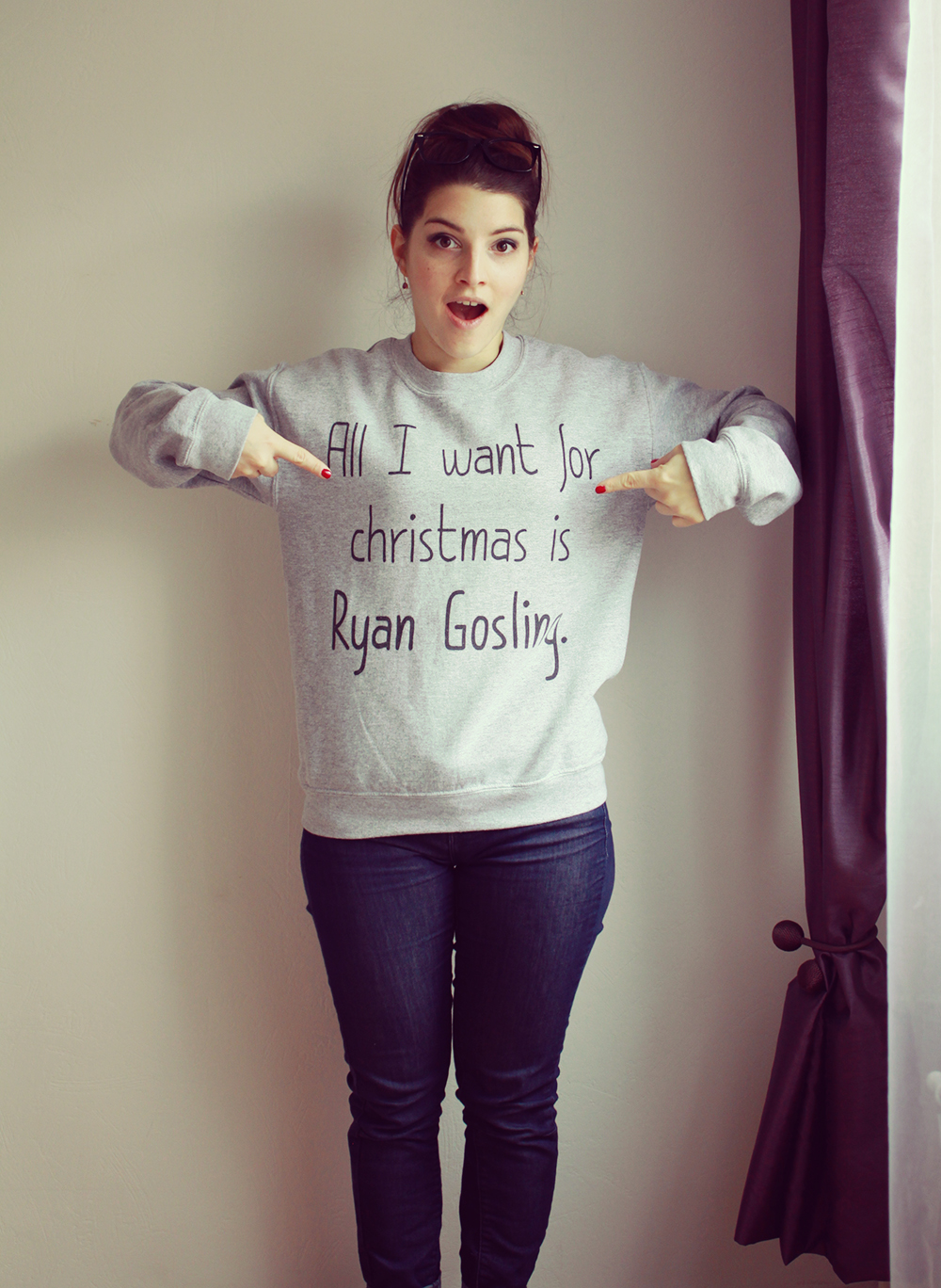 Un sweat qui tombe à pic avec les préparations de Noël qui sont en-cours et les wishlists qu’on voit un peu partout, la mienne est simple « All I want for Christmas is Ryan Gosling » … Même si maintenant Ryan est casé, on ne sait jamais …