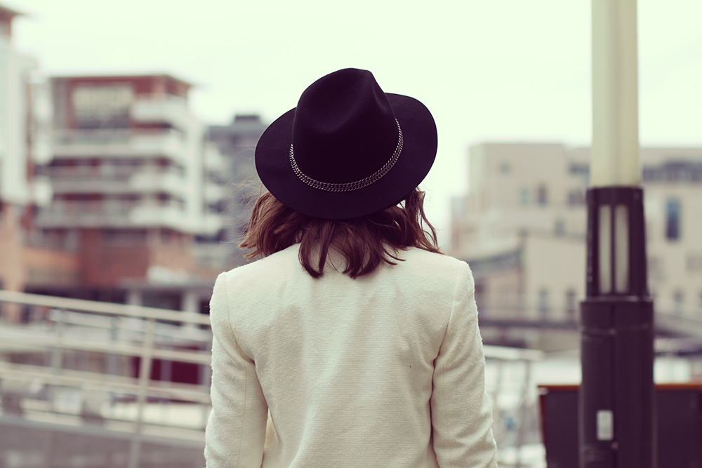 J’ai de nouveau craqué pour un chapeau de chez Pimkie mais cette fois en noir, pour aller avec tout. Et pour finir, ma petite touche de couleur pour égayer le tout, (et envoyer des messages de détresse au soleil ?) ma pochette couleur anis que j’avais acheté en mai dernier chez Primark à Londres.