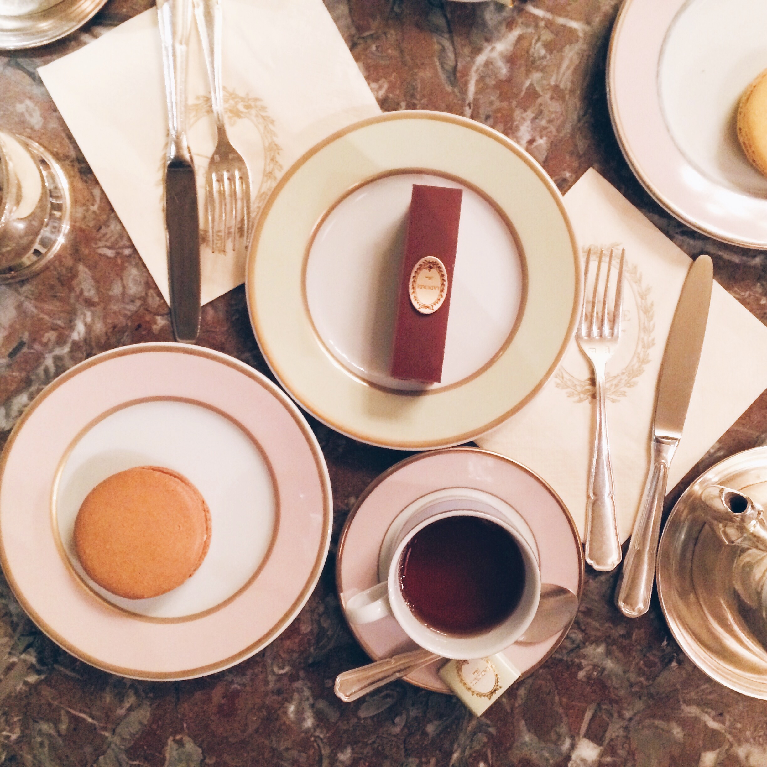 Beginning of the evening, we went to La Durée, it was our dream to eat in a fabulous tea house in Paris, and we ate amazing pastries : macarons and a fine chocolate cake.