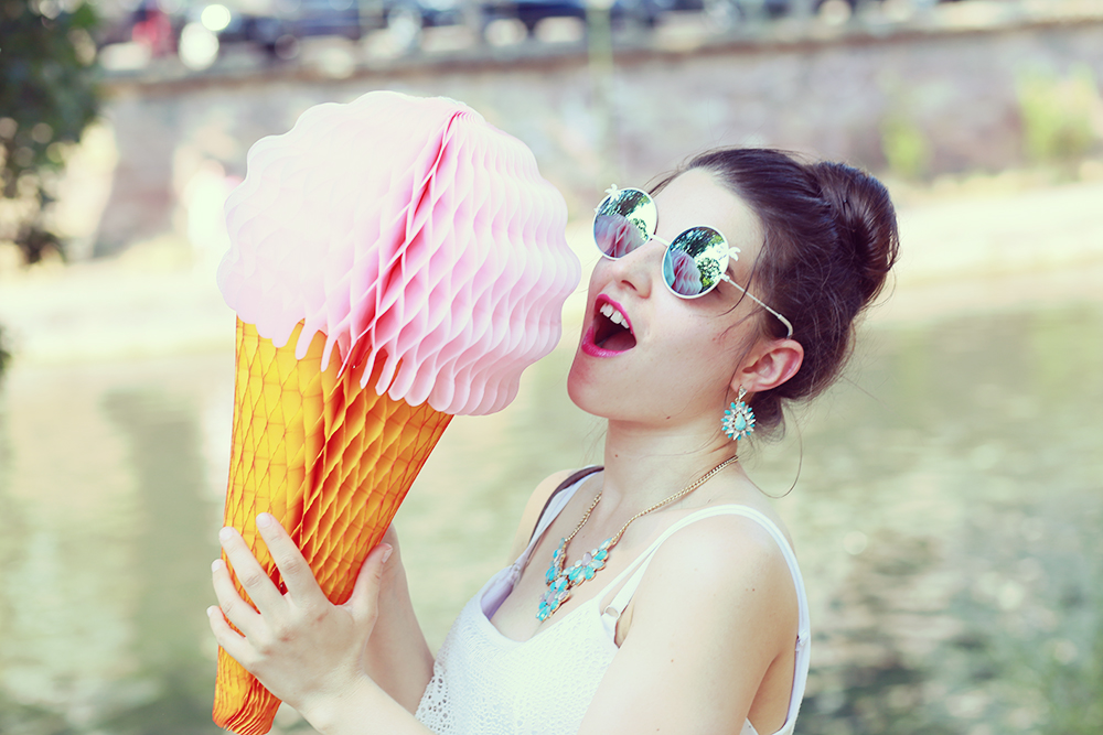 J’ai décidé de compléter mon dernier article, en vous dévoilant la tenue que je portais quand on a réalisé les photos avec le ballon géant à Strasbourg. Ca faisait un petit moment que je souhaitais faire des photos avec des objets marrants et l’anniversaire du blog tombait vraiment à pic pour cela.