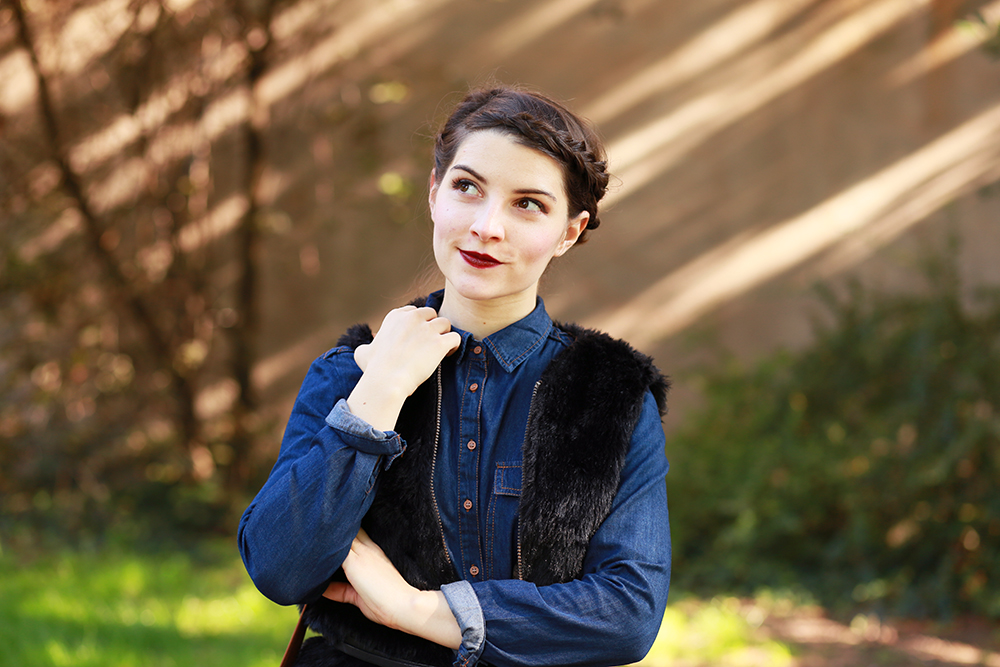 Toujours inspirée par cette vague des 70’s, je l’ai assorti avec un petit gilet en fausse fourrure, il s’agit en fait de la doublure d’un de mes manteaux.