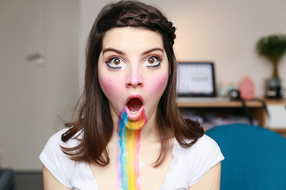 Je commence par l’incontournable Snapchat Rainbow Makeup, vous en aviez marre de ce filtre ? Et bien on vous en rajoute !!! Le tuto fait fureur sur Youtube, et je dois dire que j’ai bien rigolé quand j’ai vu des Youtubeuses le faire. Je dois aussi avouer que je n’aime pas trop les déguisements qui font peur, je suis une fille qui aime plutôt les licornes et les cupcakes, dont je ne pouvais pas y échapper, je me devais d’essayer ce makeup.